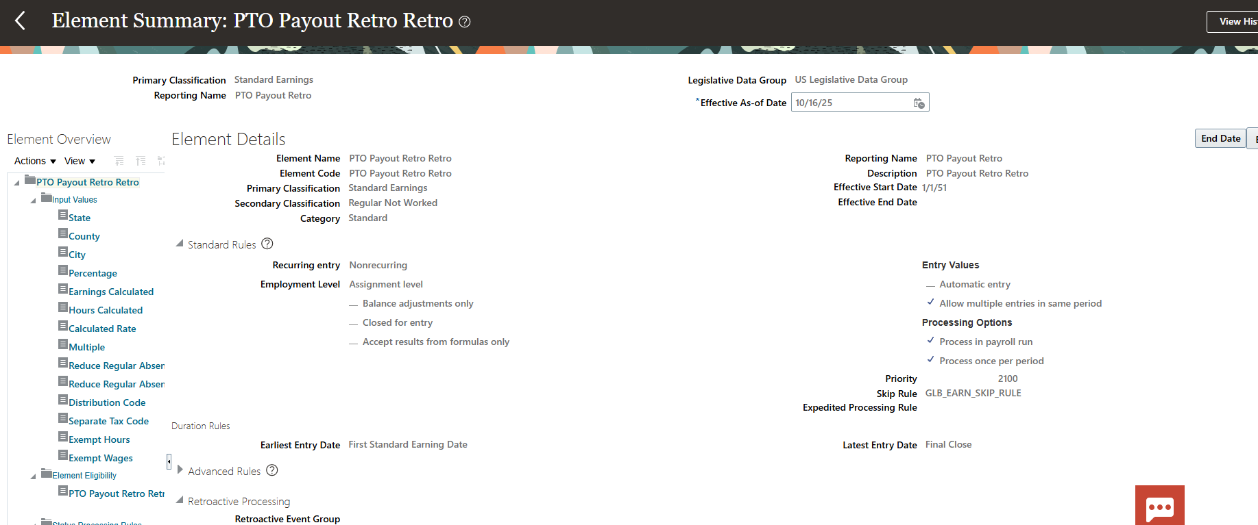 When I tried to make a direct element entry on effective date 13-Sep-2025 from person management, it allows without any errors. However, during the retroactive payroll process, I am getting these errors. Please advise if anything is missing here or any inputs to overcome this issue.