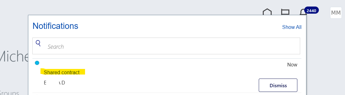 when I use the action SHARE IN SUPPLIER PORTAL in the Enterprise contract , the text message doesn't visible as notify in the supplier portal:
