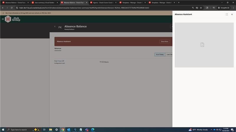 I have created an agent for absence inside of ai agent studio. I added the roles etc and can use the agent inside of me-ai agent studio and it works fine.