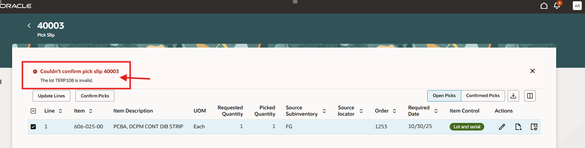 COO should auto populate when selecting a lot while pick confirm