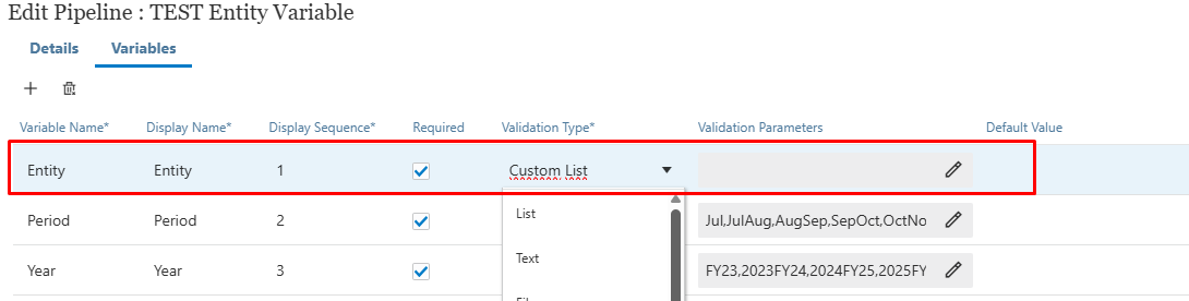 Hi, is it possible to use members from a dimension in pipeline variables in the same way as it prompts in the rules??, or is it only possible by adding them manually through a Custom List (which I would then need to maintain)?