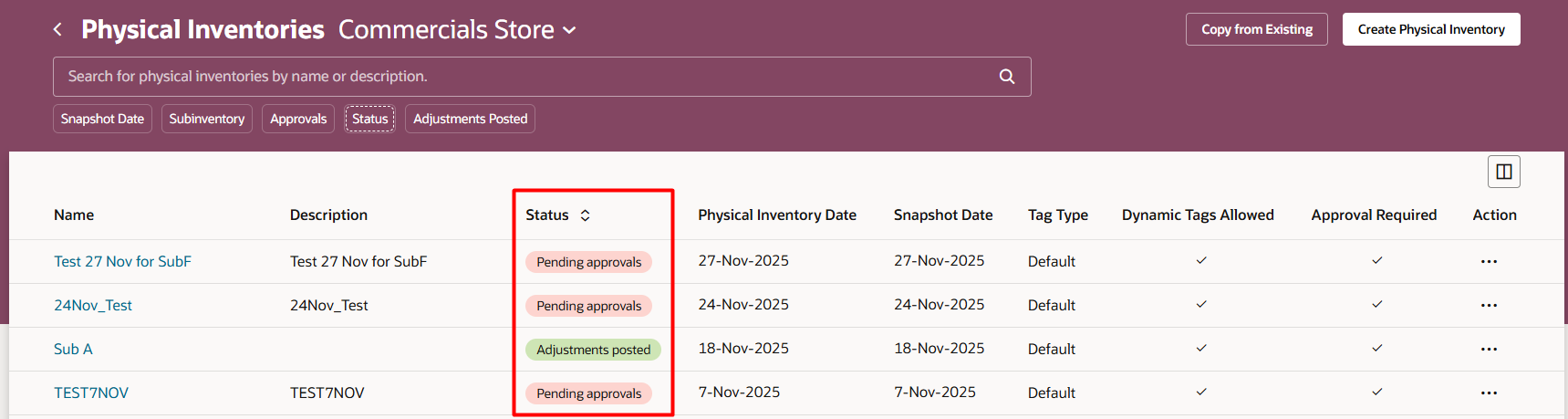 Query on ‘Pending Approval’ Status – Physical Inventory Approval Screen.