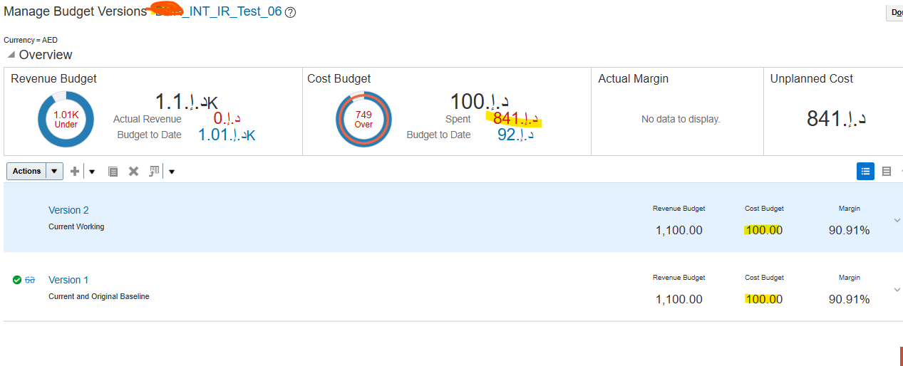 How will the budget be impacted for Project A and Project B? Should the budget be reversed at the Project A level? Also, the project cost is not getting generated at the Project B level.