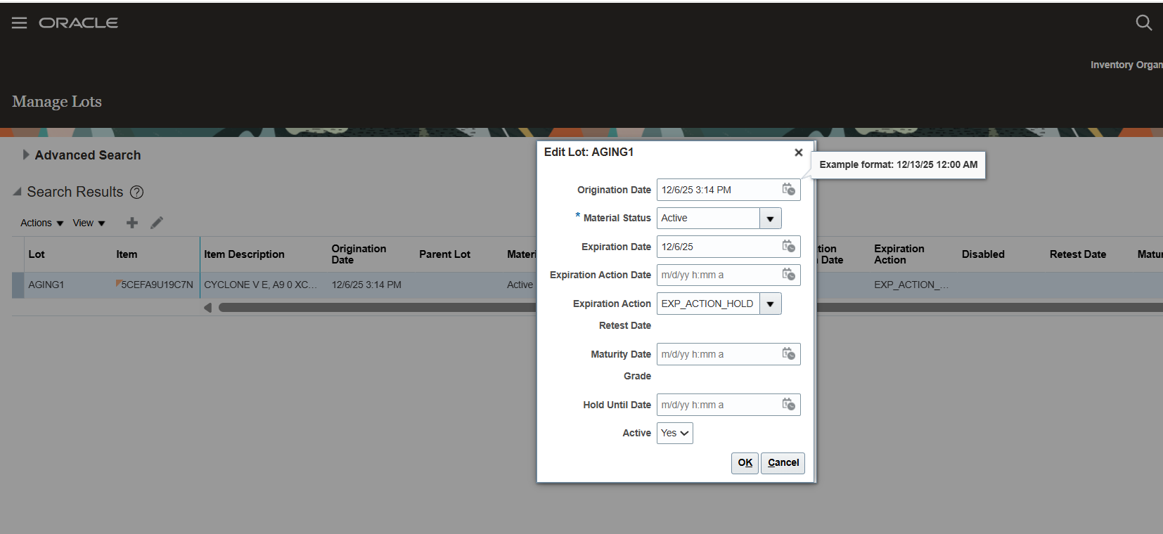 Lot expiration automated action not working in 25D