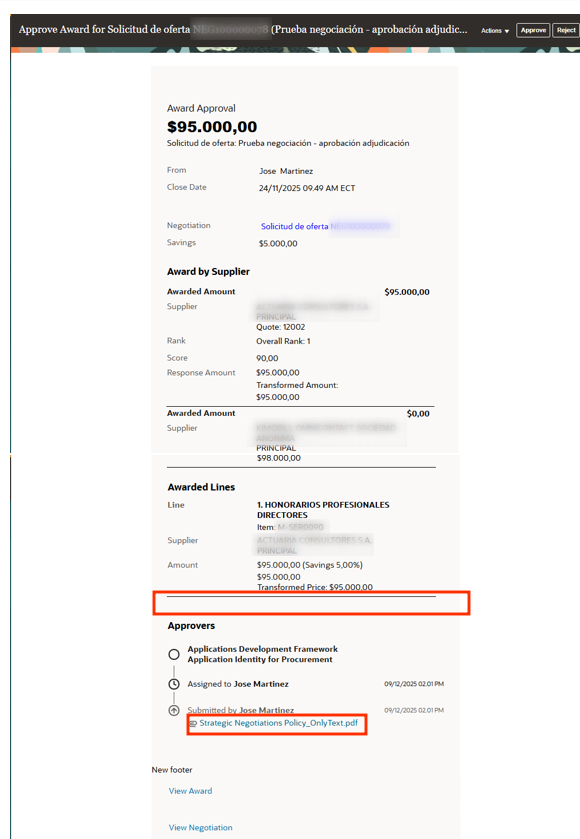 I have also attached a text-only document in the negotiation award with the category “To award approver.”