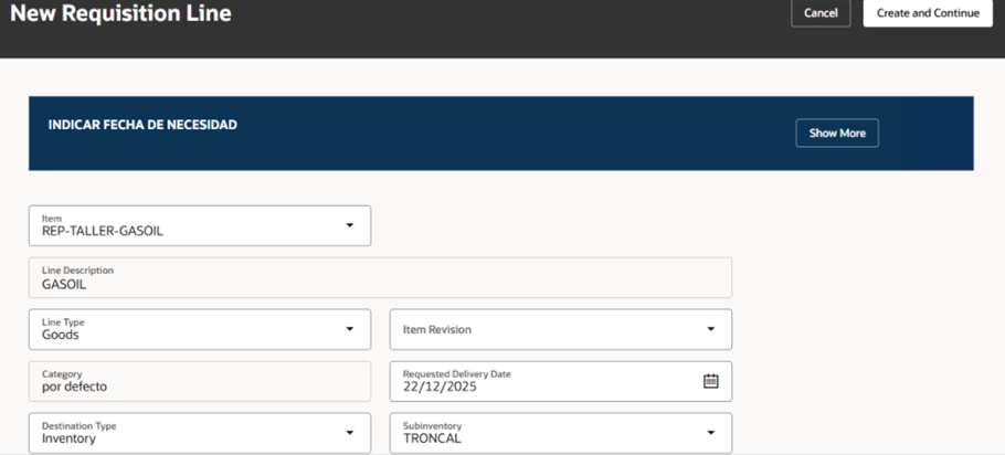 We have created a validation that when the name of the subinventory is “TRONCAL” it should give an error message.