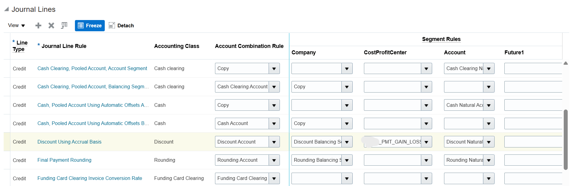 When we process payment with discount, accounting entries is not generated due to the CVR. We have created a rule to pull the invoice liability account for payment but seems it is pulling the Cost Center Segment of the Invoice Liability from Common Options. Tried to pull the Cost Center from the Project DFF (for Cost Cost Center), it works however error is encountered for invoices with no Project details.