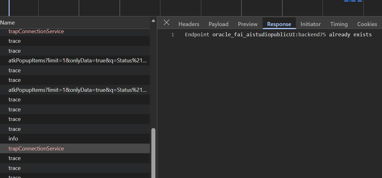 external REST tool error | Endpoint oracle_fai_aistudiopublicUI:backend75 already exists