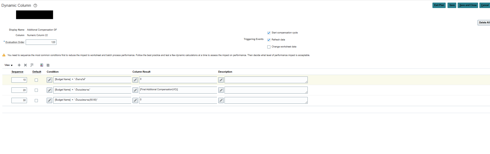 The Problem:In the worksheet, the column "Additional Compensation GF" remains at 0.00 even when the conditions are met. It only updates if I run the batch process.