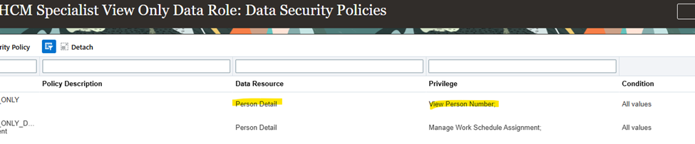 → Added the required privileges, security policy and duties (Manage Schedules and Exceptions Assignment ORA_PER_SCHEDULES_AND_EXCEPTIONS_ASSIGNMENT_MANAGEMENT_DUTYUse REST Service - Workers List of Values ORA_PER_WORKERS_LOV_REST_SERVICE_DSPS)