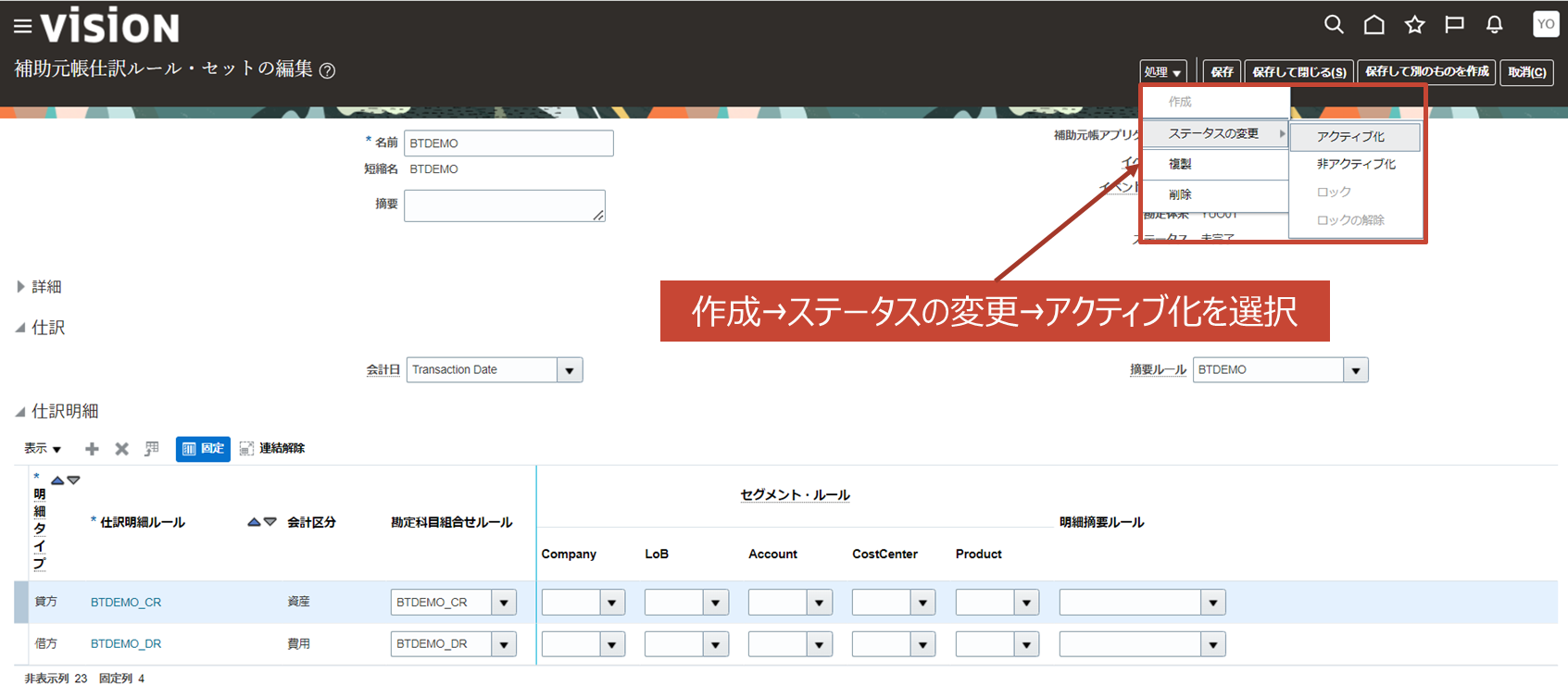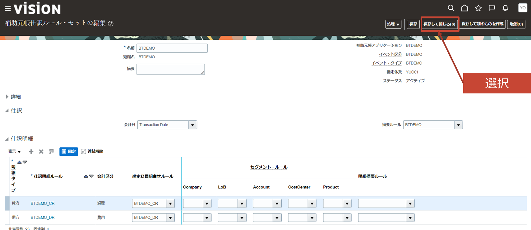 こちらで補助元帳ルール・セットの設定が完了になります。