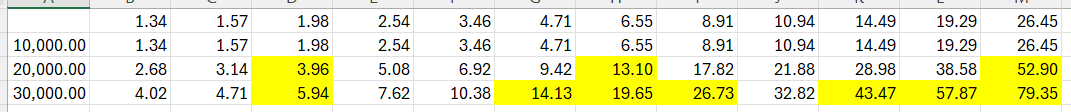 The amounts highlighted in yellow are currently incorrect due to rounding discrepancies ranging from -$0.01 to $0.02.