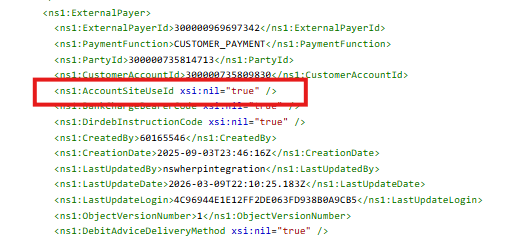Intermittent issue when assigning a bank account to a supplier site with SOAP API PayerDetailService