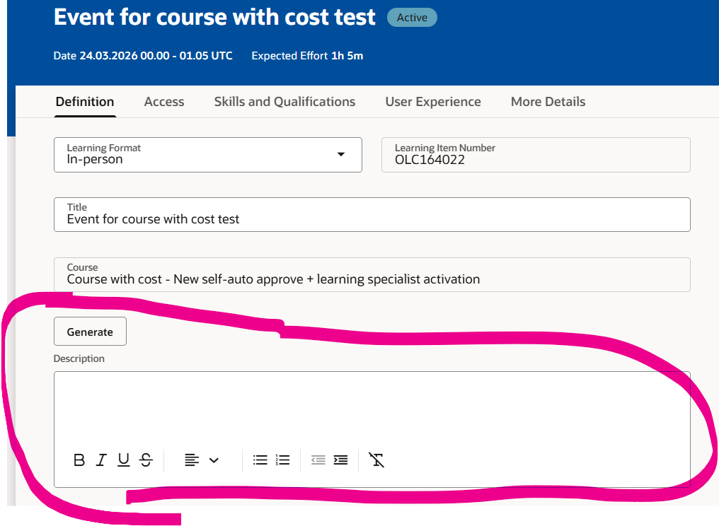 For Event instead it is possible to hide "Summary" and show "Generate" button: