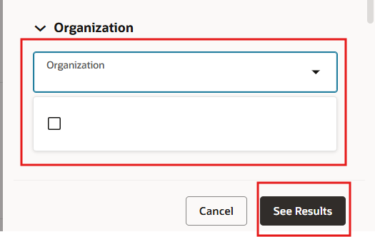 When we navigate to My Maintenance Work UI, Click on filter (select >Organization), Organization name is not coming only backend org id is shwowing up.
