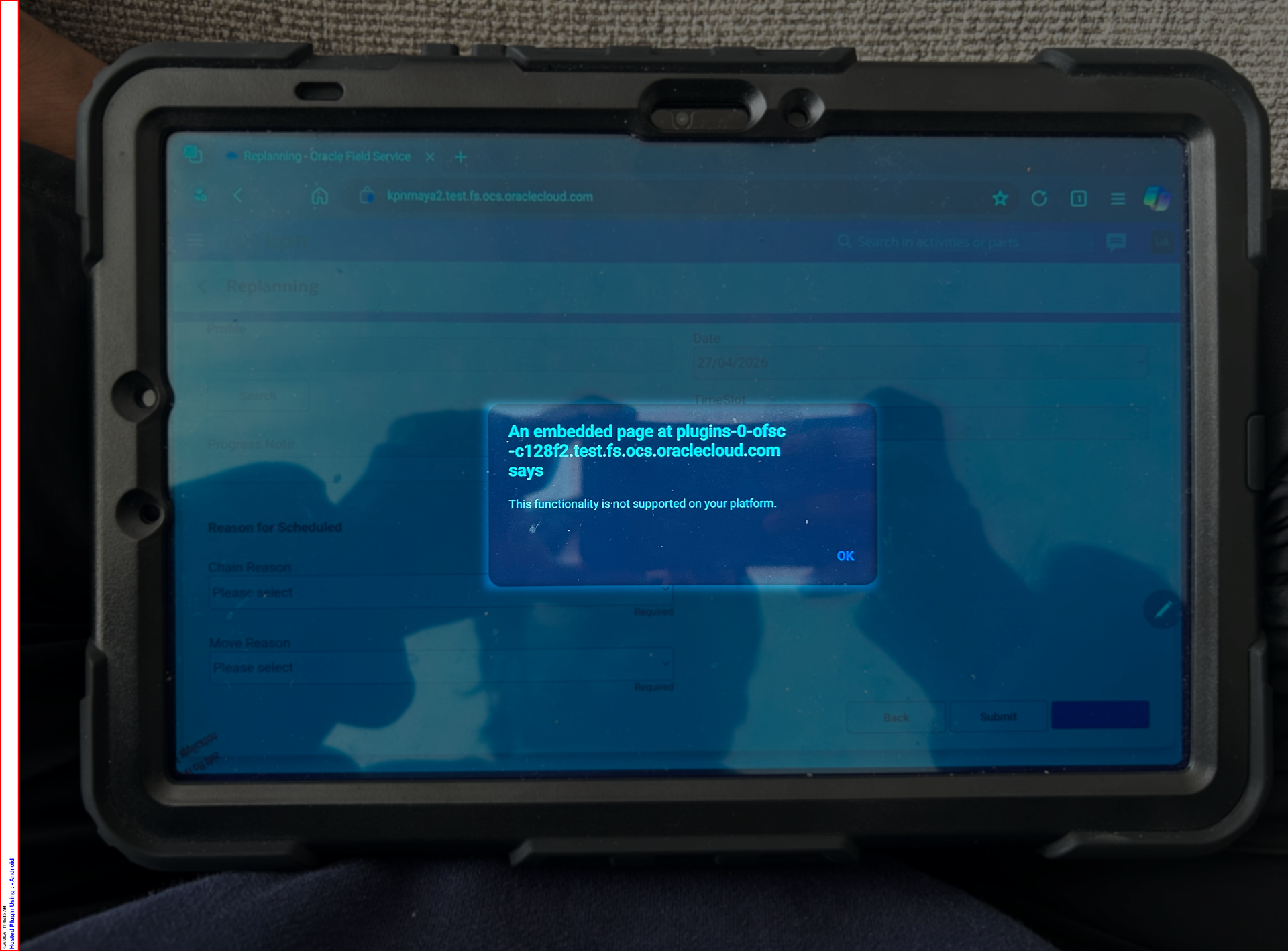 Business Impact: An ongoing project requires the app to be connected to OFSC (Engineer App). This issue is preventing progress, delaying the go-live, and directly impacting users.