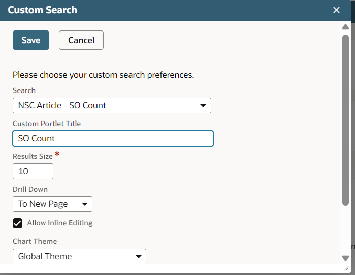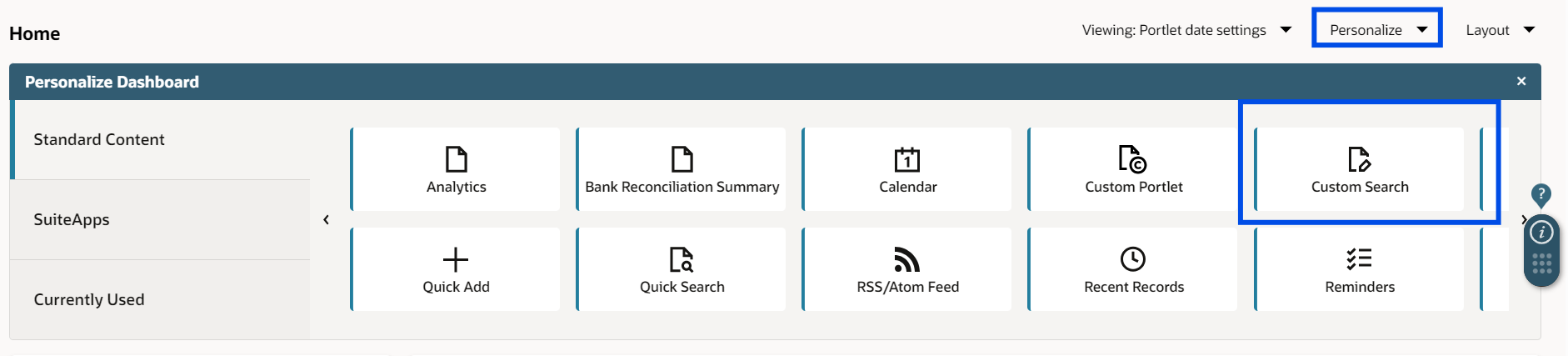 - A Custom Search portlet on the dashboard