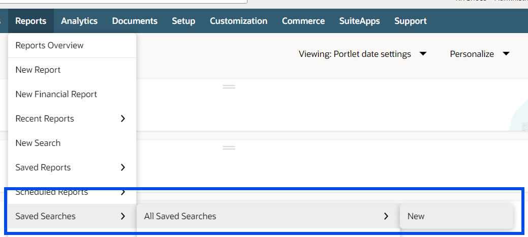 - Go to: Reports > Saved Searches > All Saved Searches > New