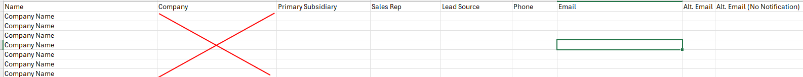 In the csv file I was using the Company column and filled it with the Name of the Child/Customer, and there I got an error….