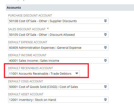 I can onyl see an option to set a default receivables account