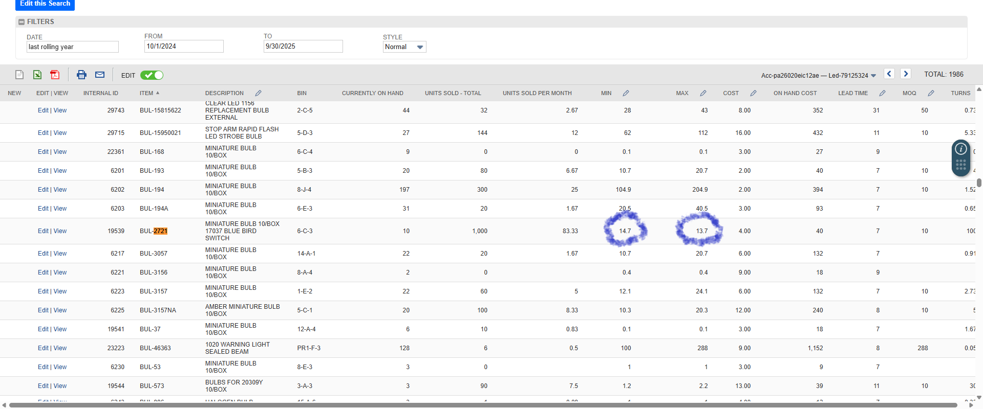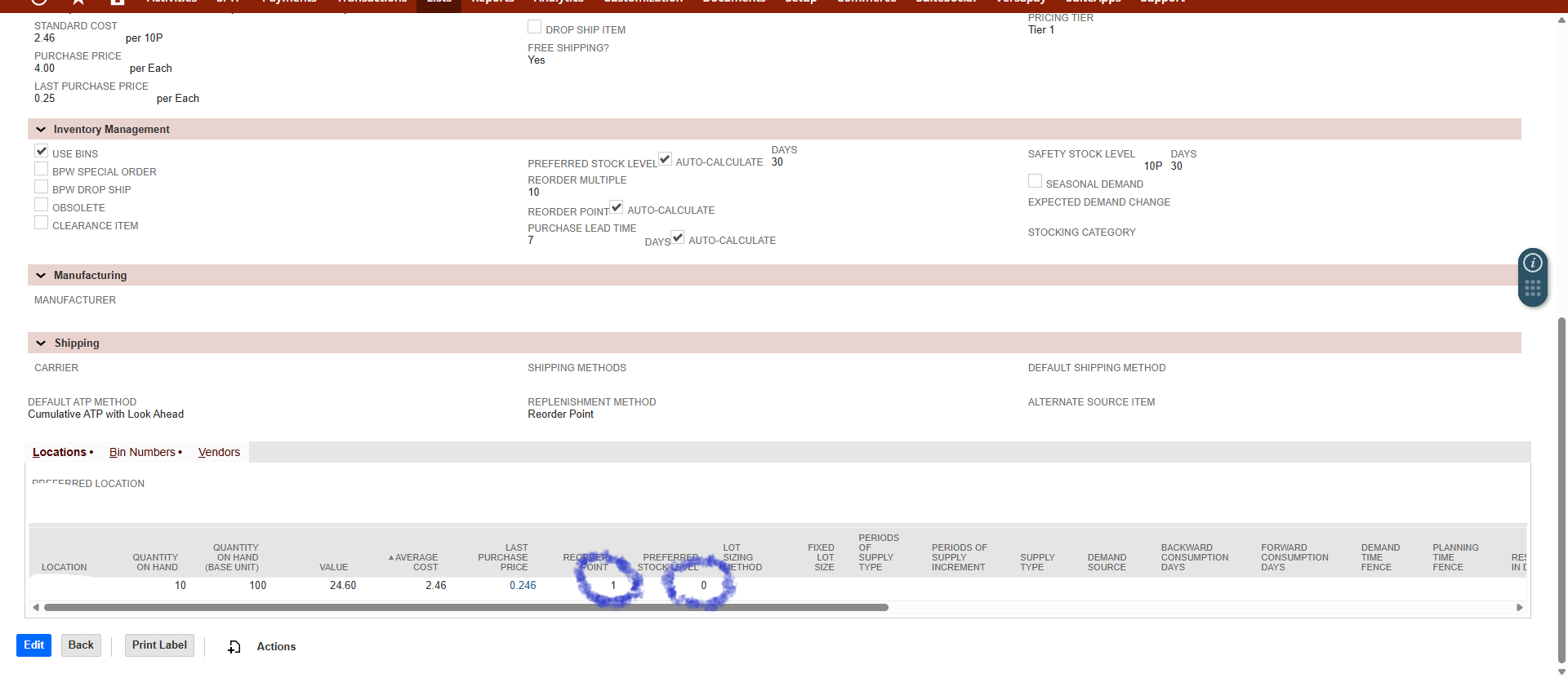 I am trying to make a saved search for my boss that shows various data. One thing he wants to see is the current values for Reorder Point (labelled Min) and Preferred Stock Level (labelled Max)