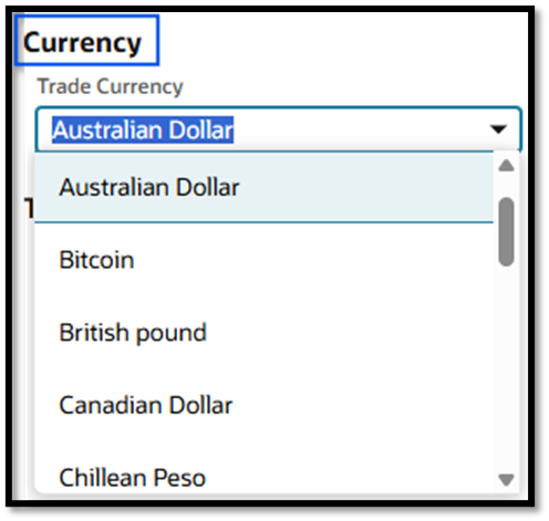 2. On the Accounting subtab, within the Currency section, select an option from the dropdown list.