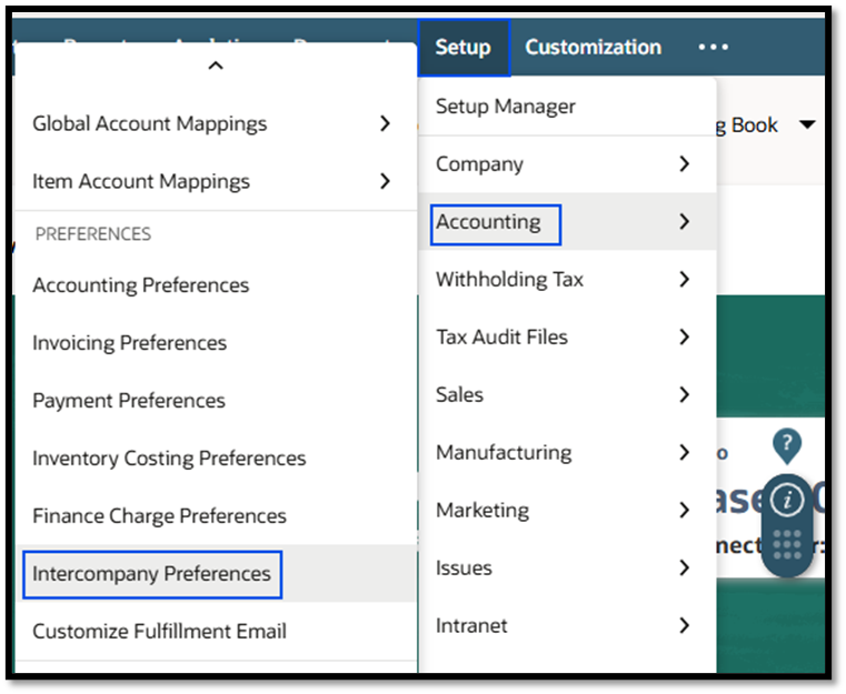 1. Navigate to Setup > Accounting > Intercompany Preferences.
