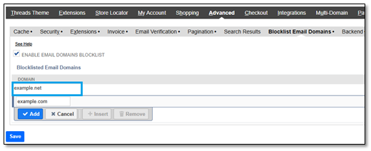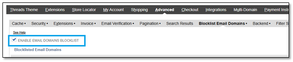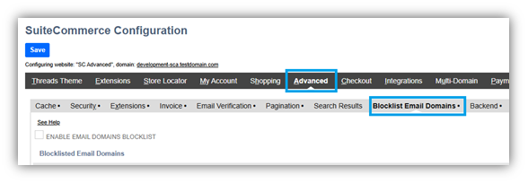 3. Go to the Advanced tab and the Blocklist Email Domains subtab.