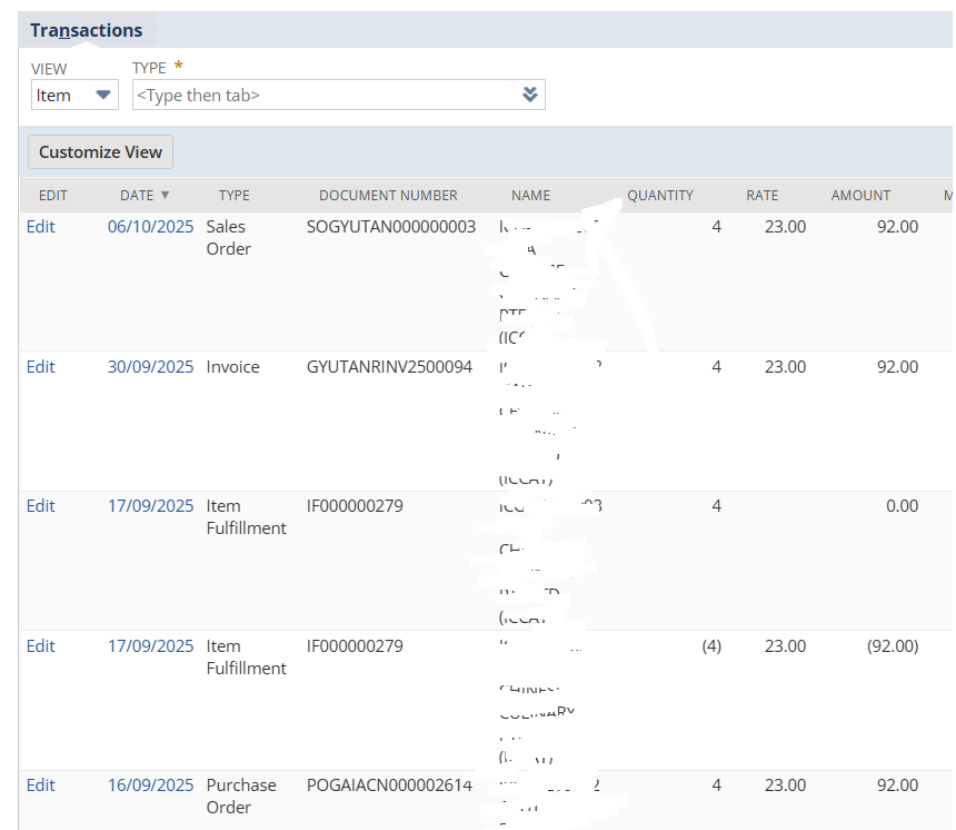 Please help to see is there anything wrong with the Inventory Item transaction history sequence below.