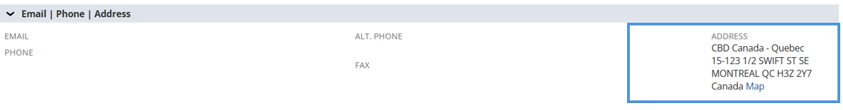 有効な顧客の住所のサンプルは15-123 1/2 SWIFT ST SE、MONTREAL QC H3Z 2Y7、カナダです: