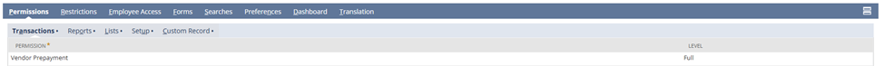 NetSuiteの始め方|トランザクション権限 > 仕入先前払権限