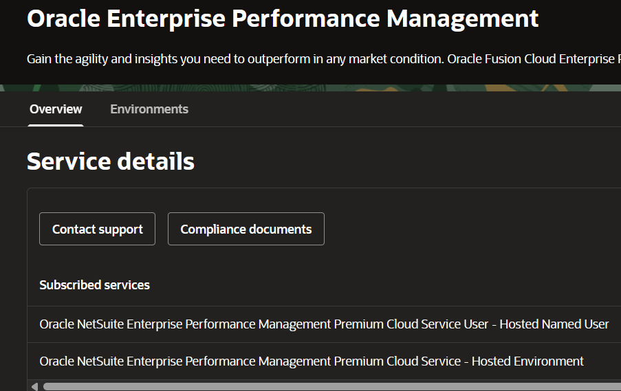 Oracle NetSuite Enterprise Performance Managementライセンスの場合、次のものがプロビジョニングされます。