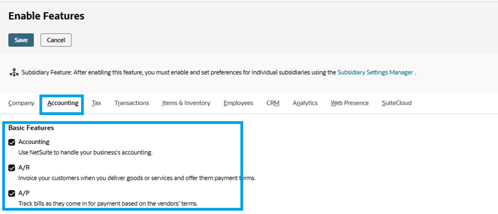 Novo no NetSuite | Como habilitar recursos para criar contas