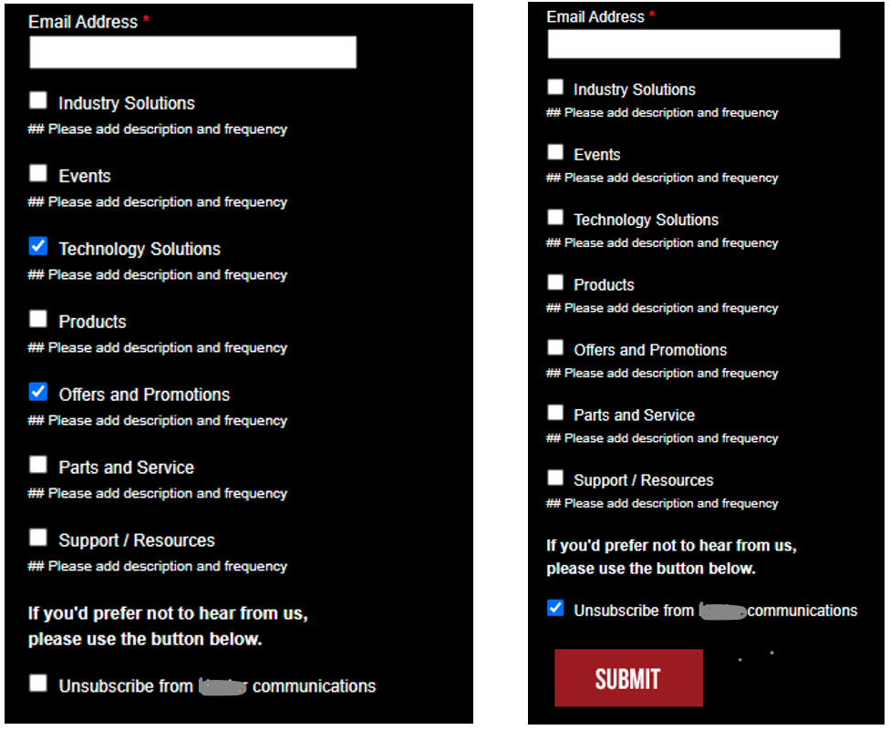 誰かが購読を解除するときに、購読設定のチェックを外せたらいいと思いませんか? 逆に、購読設定のいずれかをチェックしている場合は、購読解除チェックボックスをオフにしますか?