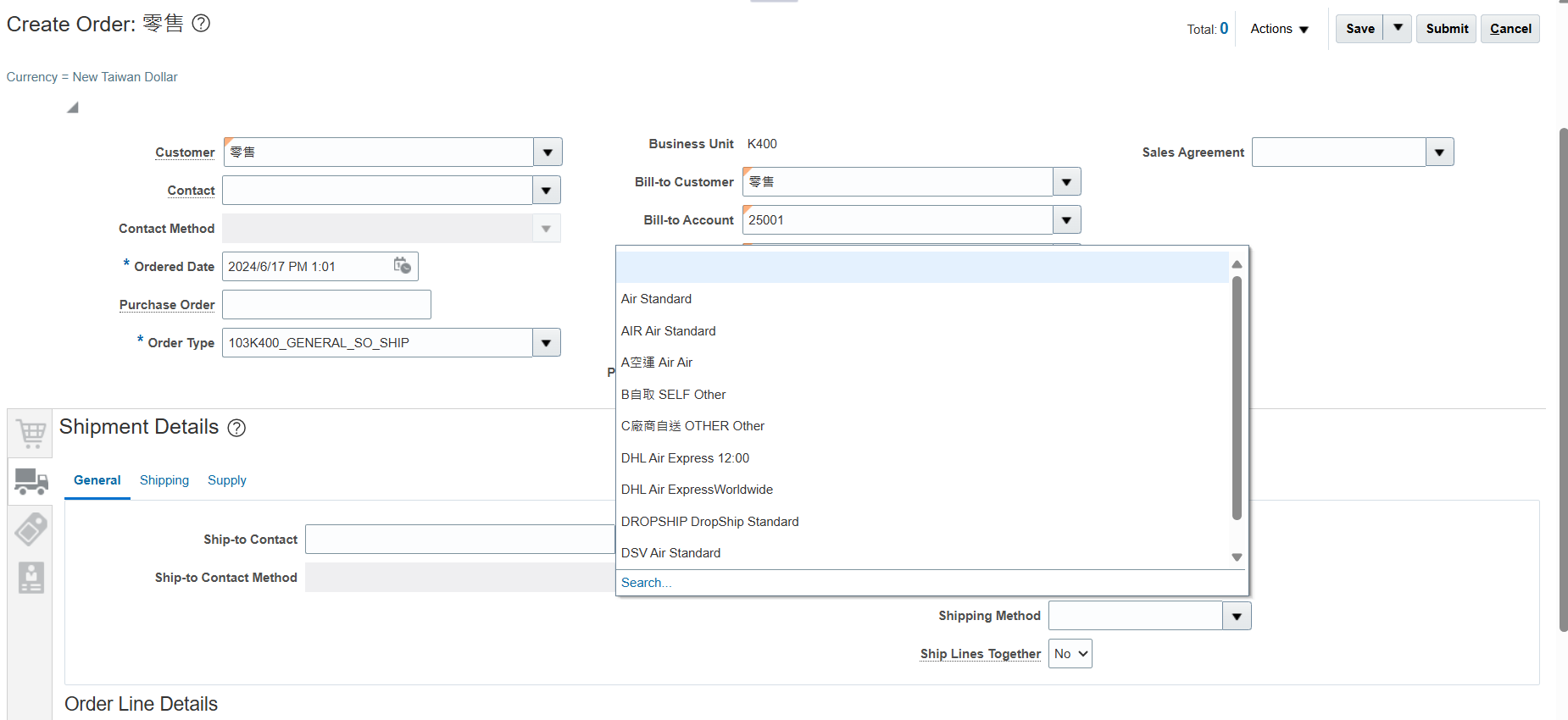 I want to create a shipping method. After creating Carriers, the order cannot be selected.