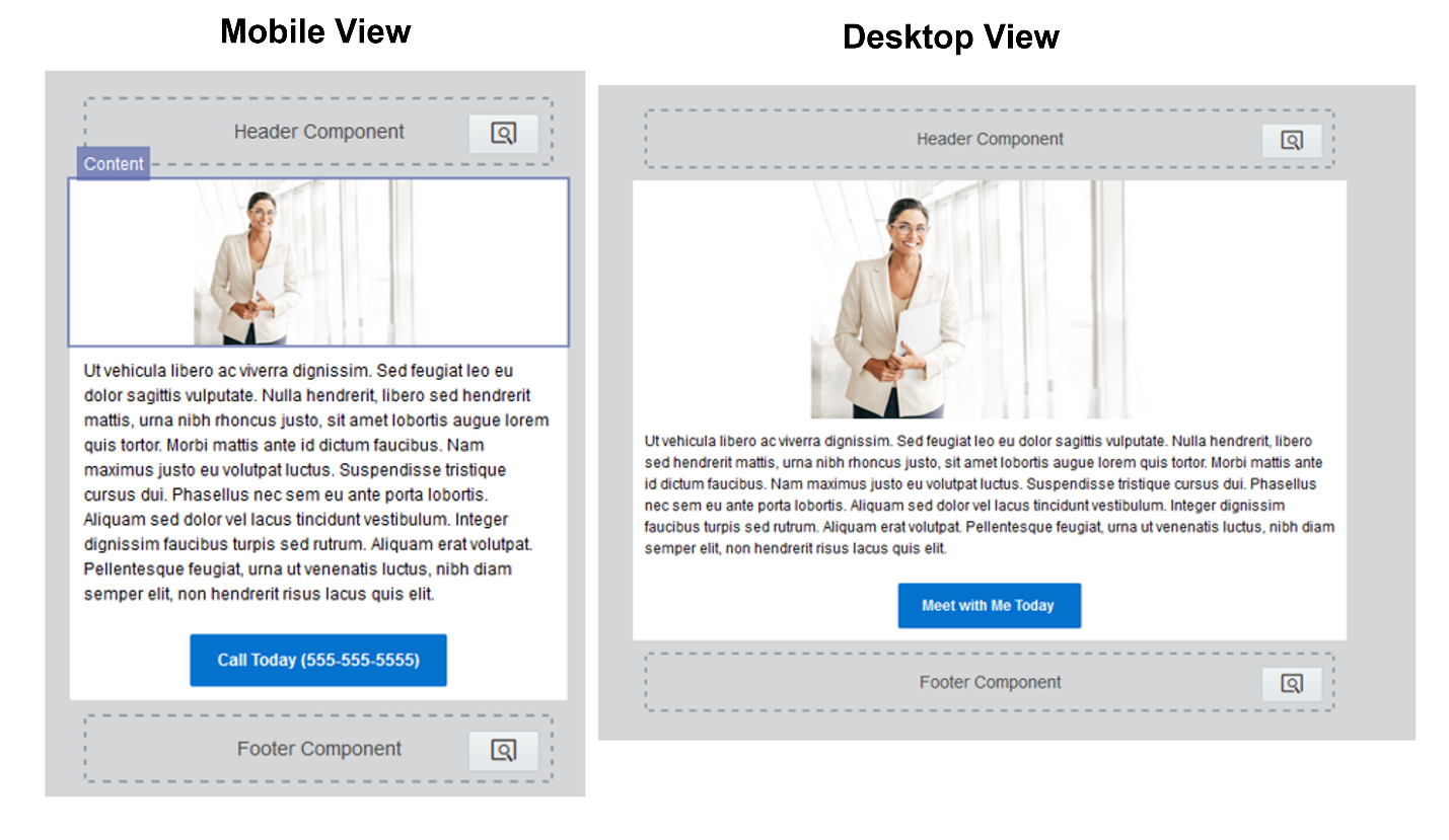 アダプティブ デザインは、デバイスに基づいて特定のエクスペリエンスを作成します。たとえば、マーケティング担当者は、視認性を高めるために、モバイル デバイスとデスクトップ デバイスで異なる画像を選択できます。さらに、特定のデバイスには、「今すぐお電話ください」という CTA の方が、「ここをクリック」という CTA (行動喚起)よりも適している場合があります。