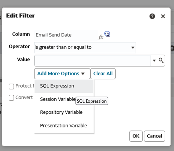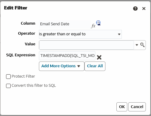 c. 「条件」タブに移動し、送信日フィルターを編集します – メール送信日が次の日付より大きいか等しい