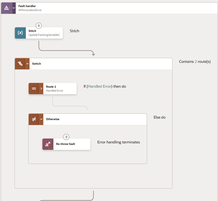 EDIT: It appears that it's unavailable underneath the SWITCH statement whilst in OIC2 it could be used there, hence the existence of the below. The purpose of it is to throw the integration entirely if it's an unhandled error.