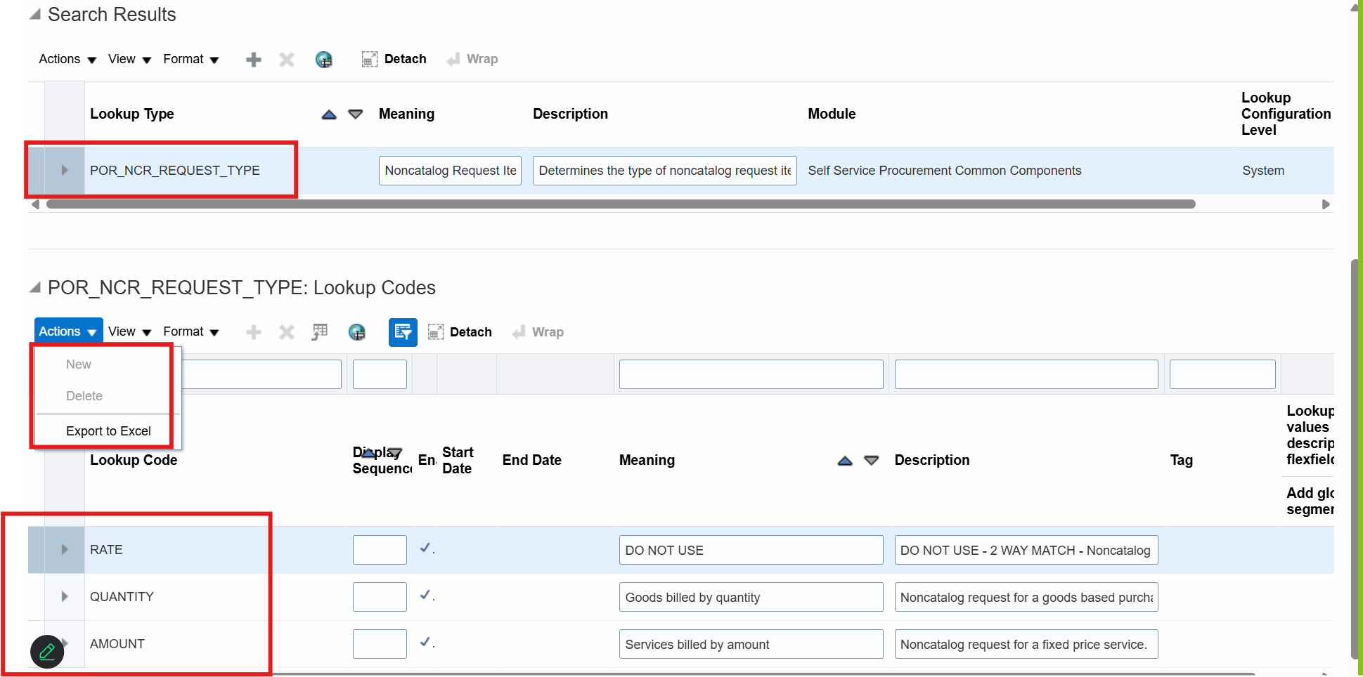 Also in Manage Standard Lookups»POR_NCR_REQUEST_TYPE Credit is not available as an option,but we are unable to add a new line using Actions also