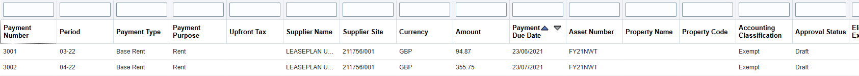 However when the same payment template is used to generate payments on an Exempt lease, tax is not applied: