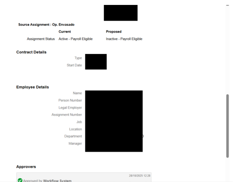 To investigate, we deactivated the Redwood profile and tested the same transaction using the Responsive UI. In that case, the compensation details do appear in the post approval notification as expected.