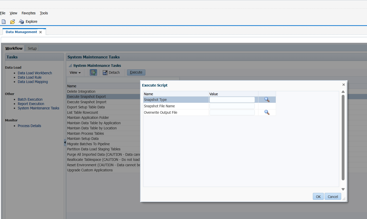 However, I noticed that the Schedule option is missing in Data Management → Workflow tab → System Maintenance. Due to this, I’m unable to schedule the "Execute Snapshot Export" job.