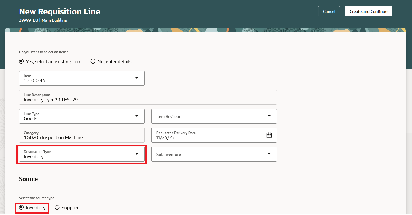 ・Destination Type/ Source Type =Inventory/ Inventory→ Tax Classification Code is not defaulted.