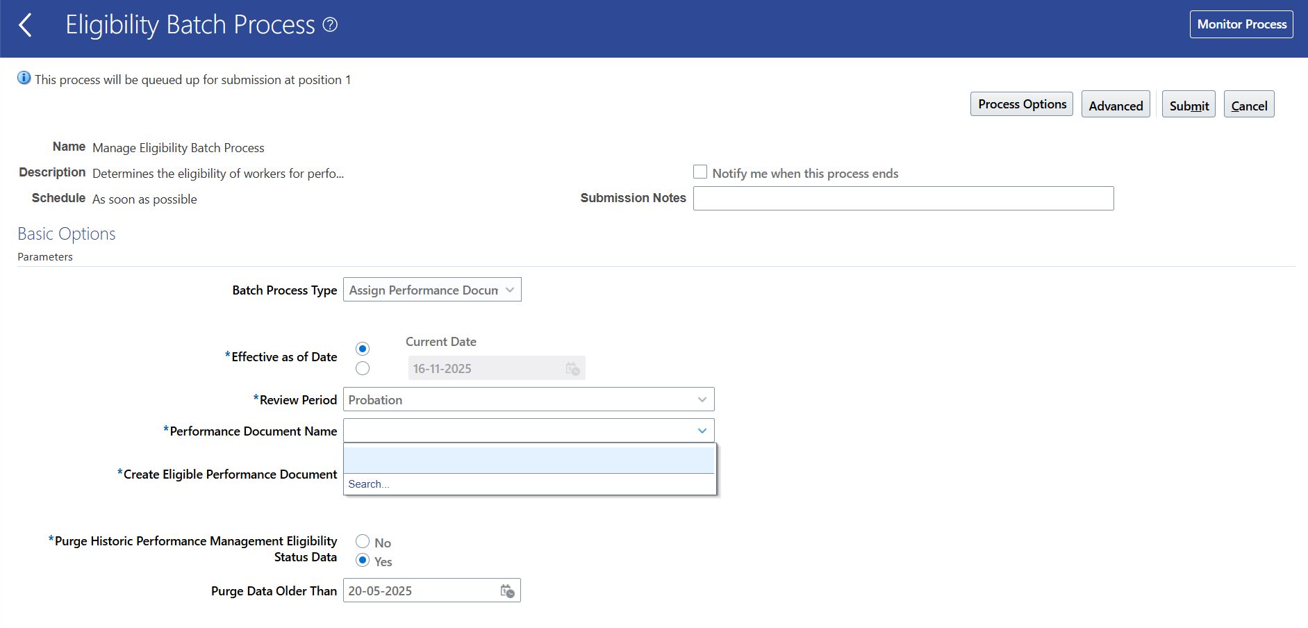 I have completed the performance template but once i try to run Eligibility Batch Process *Performance Document Name filed show nothing