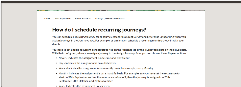 Need guide for recurring journey