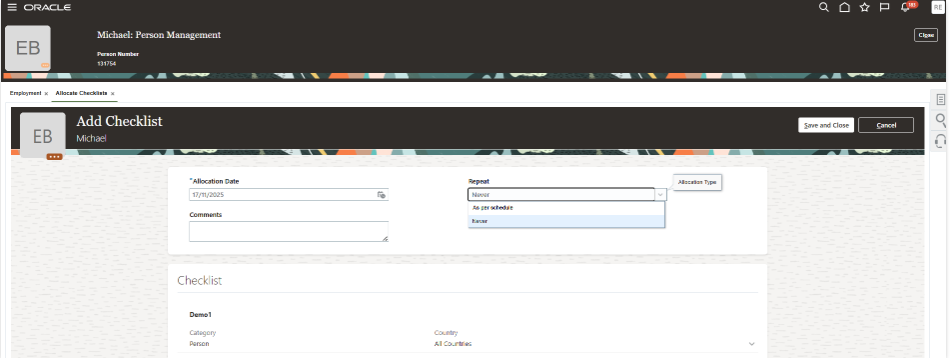 But While allocating only 2 options are showing never and As per Schedule But in oracle document they have mentioned 5 Options.