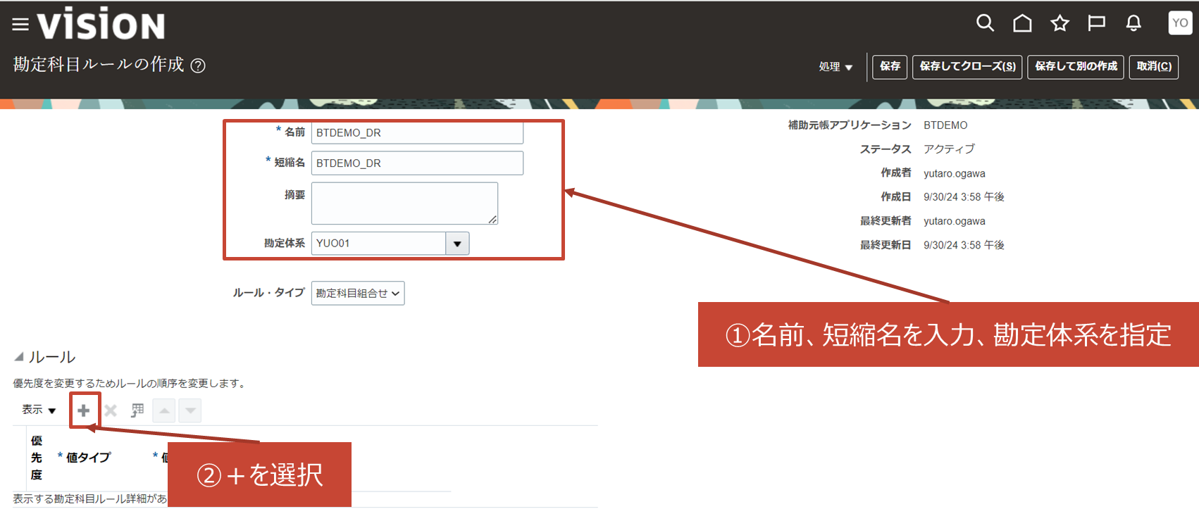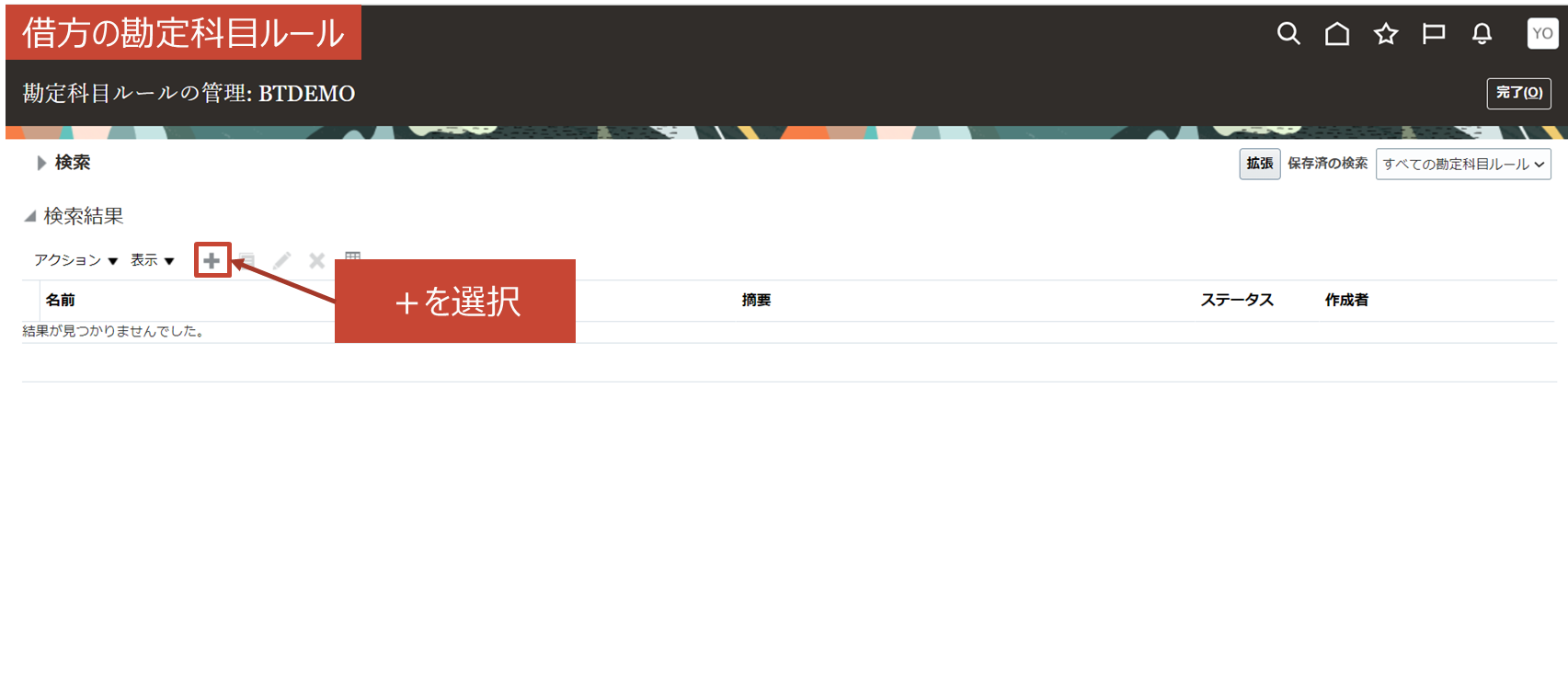 ※あくまでも今回は設定方法を伝えるのではなく、どのように仕訳が作成されるかをお見せすることを目的にしているので、簡単な仕訳作成ルールであることをご了承ください。また、デモ環境の都合上、勘定科目の妥当性についてもご容赦ください。実際は適切な勘定科目を設定できます。