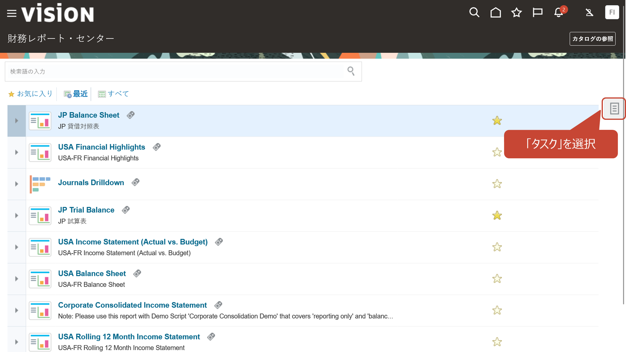 財務レポートは、損益計算書や貸借対照表などの財務諸表のデータを任意の分析軸で切り替えをしたり、明細データへのドリルダウンを直感的に行える強力なツールです。