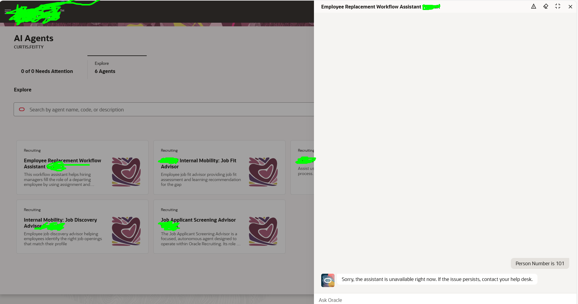 We have used seeded Agent Employee Replacement Workflow Assistant and have published it. The trigger is passing a person number. The triggering is working fine when we are testing as AI Agent Studio Admin.