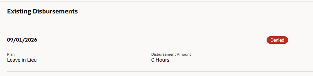 However, after approval, the Disbursement value is nullified, and the Disbursement request is shown as 'Denied'.